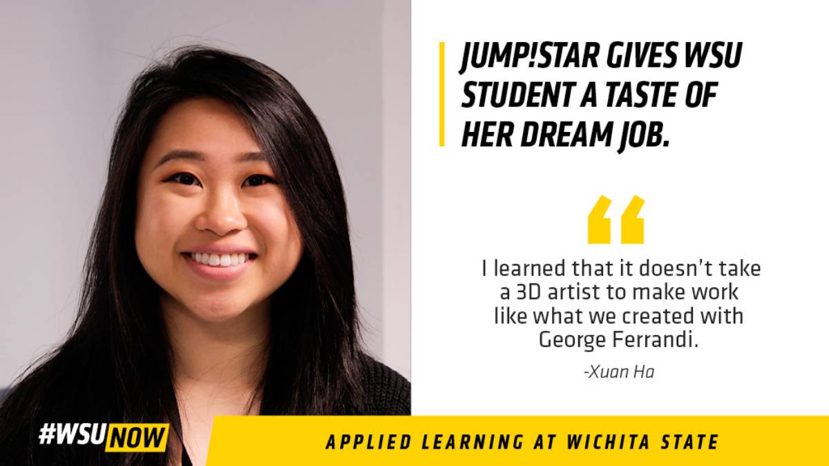As part of a summer class, senior fine arts major Xuan Ha got the opportunity to work on the Jump!Star sculpture, working to fabricate a large, illuminated paper sculpture.