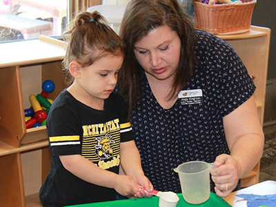 Lead Teachers at the Child Development Center meet or exceed Kansas licensing standards and have at least one undergraduate, graduate or early childhood credential.