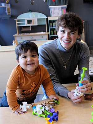 James is the Lead Teacher Assistant in Room 8 with the 3 and 4-year-olds. He is a sophomore at Wichita State and is majoring in Secondary Education with a minor in Psychology. After graduating he hopes to pursue a master's degree and teach high school history. James began working at the CDC in October 2023. Some of James' favorite things include writing, tea, and tabletop roleplaying games. One of his favorite things about working at the CDC is the wonderful community of staff and families. He loves to meet the children where they are and help them grow from there. In Room 8 he enjoys playing with the preschoolers inside and outside, sharing fun facts, and connecting with each child at snack time. James is so excited to be Room 8's Lead TA and cannot wait to see what comes next.