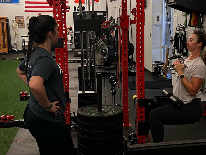 Her work extends beyond traditional personal training, as she currently collaborates with notable athletes and teams. One of her primary clients is amateur MMA fighter Devin Gomez, who fights for NextGen Fight Team in Wichita. "I work with him 1-3 times a week, focusing on MMA-specific needs like injury prevention, power development, relative strength, and even things like neck strength and endurance to improve his chin. I also work with his fight team once a week as a group, tailoring workouts to prepare them for upcoming fights." Bella also trains Shockwave Volleyball Club and the WSU Shocker Rowing Team, further diversifying her expertise. In addition to her training responsibilities, she contributes as a Social Media Content Creator at Amplify, managing digital engagement and outreach.