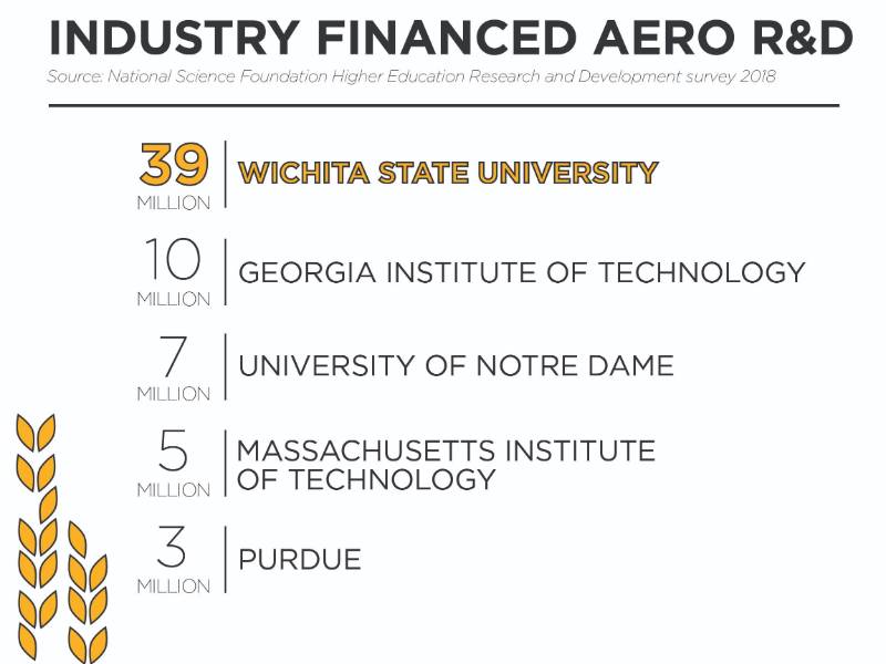 The National Science Foundation (NSF) has released updated rankings for university research and development (R&D) expenditures, and Wichita State has held its position as the top university in the country for industry-funded aeronautical R&D with a total of $39 million in fiscal year 2018.