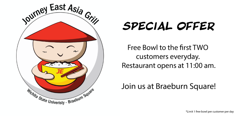 Be one of the first two customers at Journey East Asian Grill located in Braeburn Square and receive a FREE Bowl. The restaurant opens at 11 a.m. every day. Limit one free bowl per the first two customers per day.