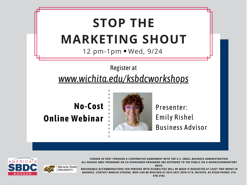 Register for this no-cost webinar at wichita.edu/ksbdcworkshops.
