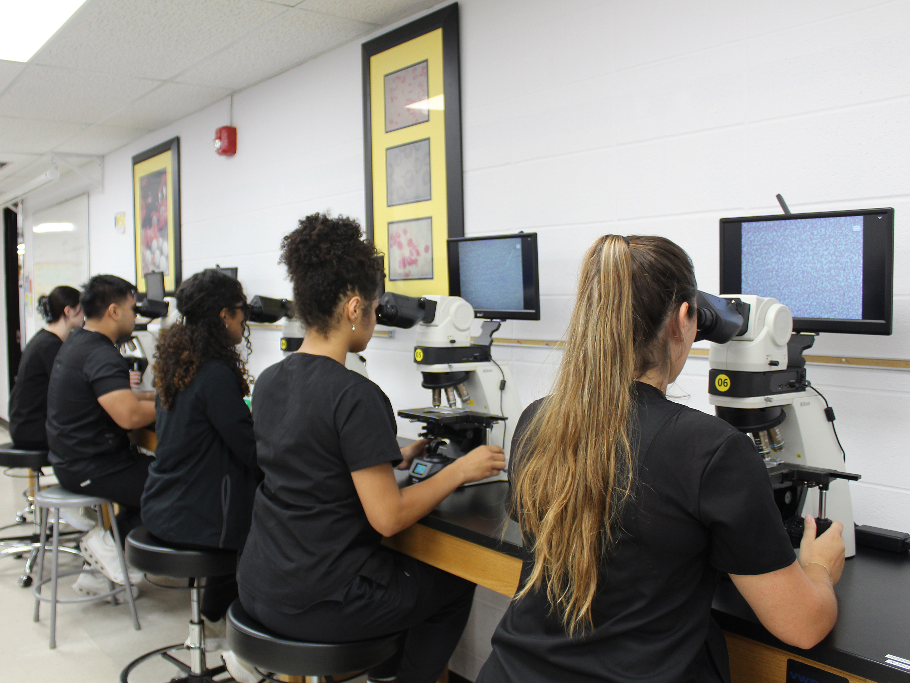 In the Medical Laboratory Sciences program, the upgraded features digital microscopes with Wi-Fi connectivity and built-in high-resolution cameras. This technology allows live images from the microscope to be projected onto classroom screens, enabling students to collectively analyze specimens and share observations in real time.