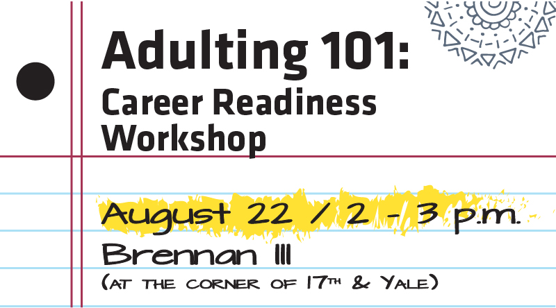 Come to the Adulting 101: Career Readiness Workshop from 2-3 p.m. Wednesday, Aug. 22, in Brennan III.