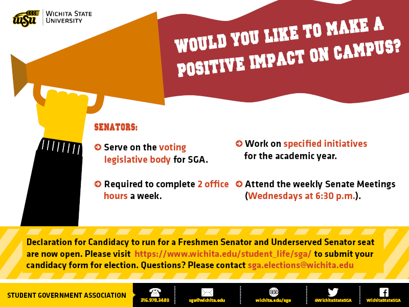 For more information and details for this initiative, contact the SGA Office by email at sga@wichita.edu, call 978-3480 or click on Food for Fines.