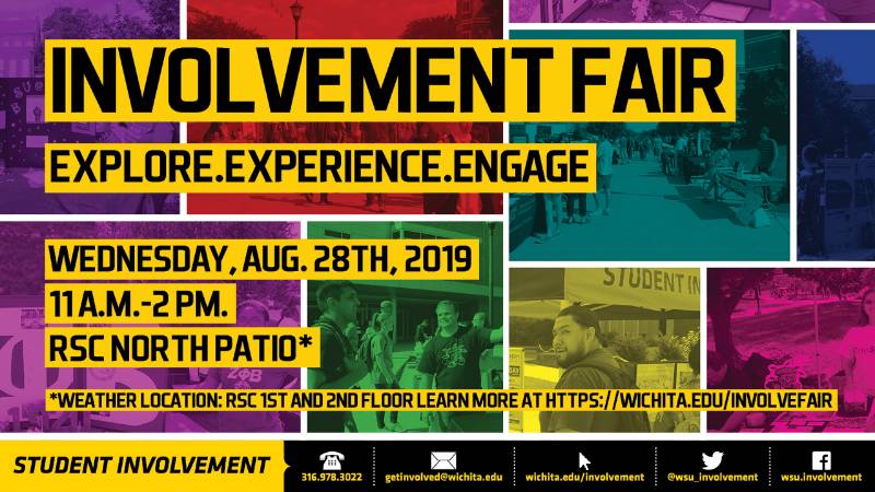 The Involvement Fair is an opportunity for Wichita State students to learn about WSU Registered Student Organizations (RSOs). The Involvement Fair is also an opportunity for RSOs to meet new students, and to collaborate with other organizations.