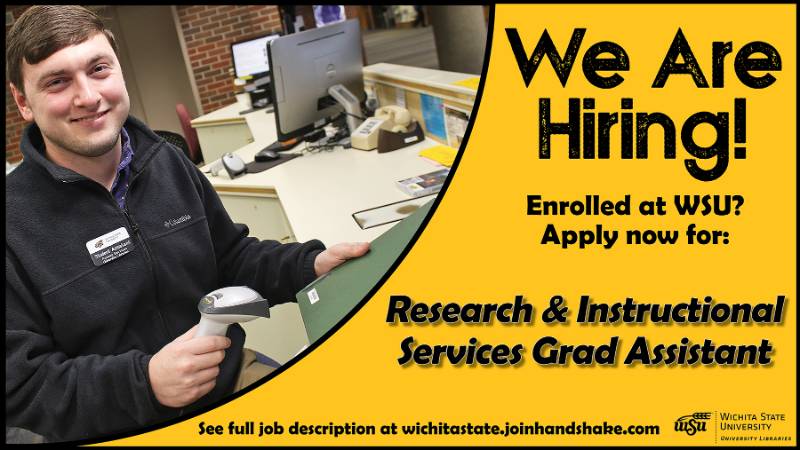 University Libraries has an opening for a Research and Instructional Services Graduate Assistant! To apply and/or see the full job description, visit the Handshake link.