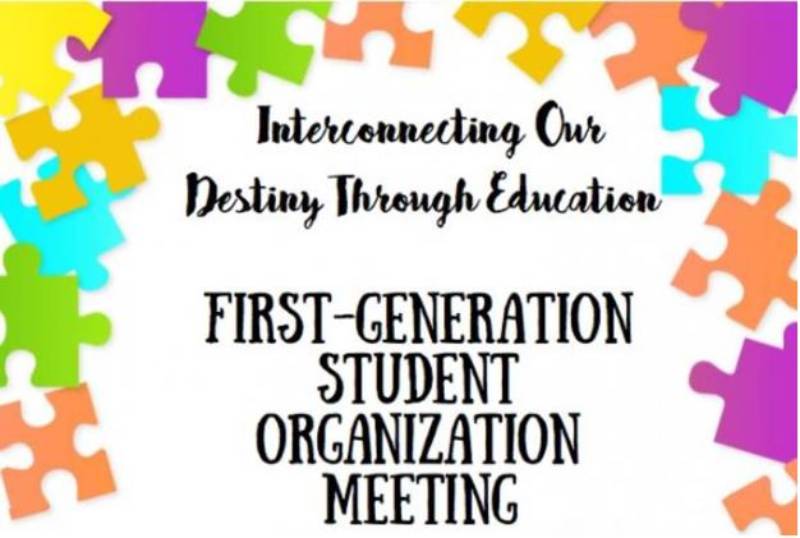 A First-Generation Student Organization meeting will be held from 1-2 p.m. today (Friday, Aug. 21), in 261 Rhatigan Student Center.