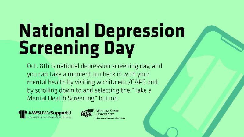 National Depression Screening Day is Thursday, Oct. 8, and this year you can check in with your mental health by taking a mental health screening! Just visit wichita.edu/CAPS, scroll down and select "Take a Mental Health Screening" to begin.