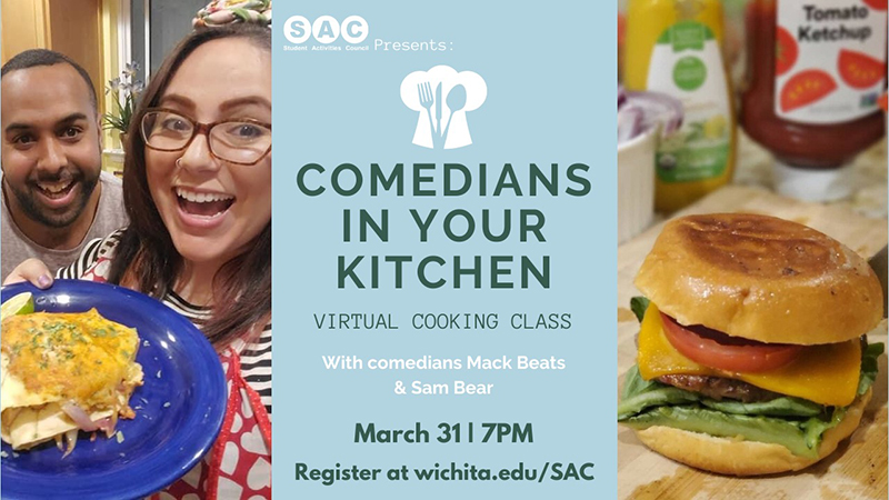 Comedy and cooking is always fun together. Come out and learn a new recipe with some fun included at 7 p.m. March 31. Register at wichita.edu/SAC.