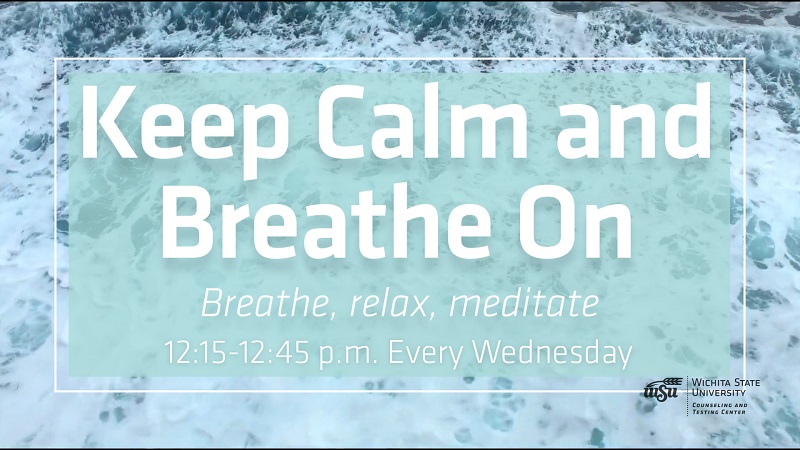 Join the Counseling and Testing Center again this semester for Keep Calm & Breathe On from 12:15-12:45 p.m. today (Wednesday, Jan. 9), in 314 RSC.