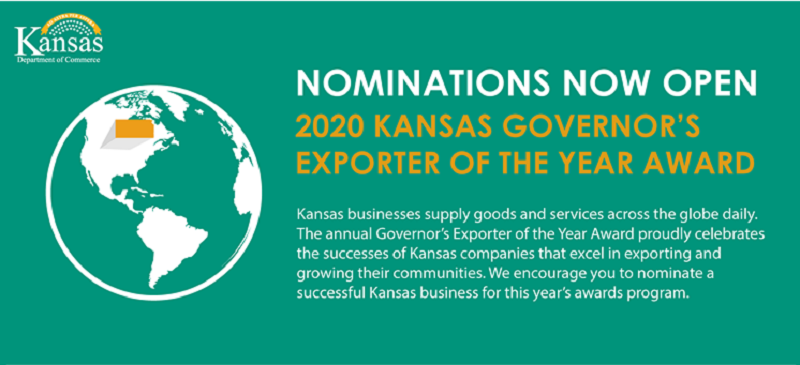 Last chance to nominate! 2020 Kansas Governor's Exporter of the Year Award - Deadline Jan. 31