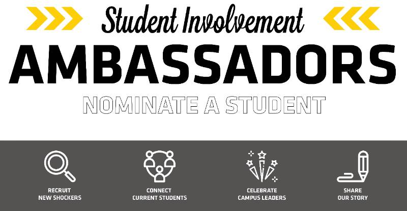 Student Involvement Ambassadors is looking for students who are passionate about getting involved. We are a team dedicated to recruiting new Shockers, connecting current students to opportunities, celebrating campus leaders and sharing our story.