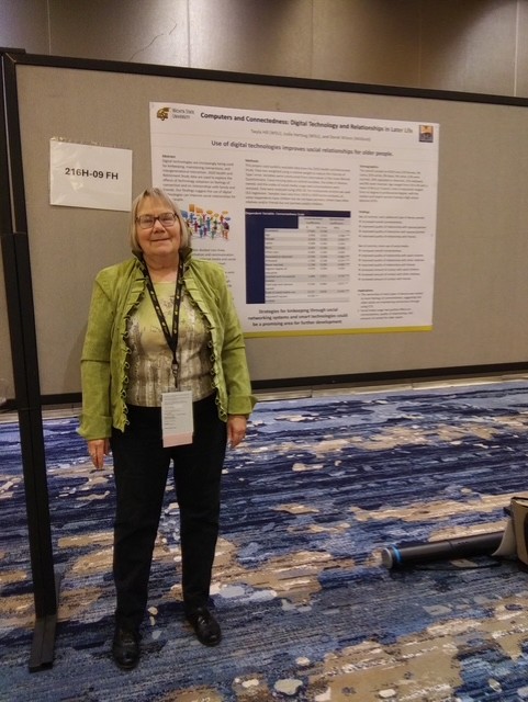 Dr. Twyla Hill, Professor of Sociology at Wichita State University, braved the weather in Bellevue, Washington on November 21 to present research conducted in collaboration with WSU colleague Dr. Jodie Hertzog and WSU Sociology MA program alumnus, Dr. Derek Wilson (now Assistant Professor of Sociology at Midland University) at the annual conference of the National Council on Family Relations (NCFR). Their study, which received the 2024 Issues in Aging Focus Group award for professional papers, was titled "Computers and Connectedness: Digital Technology and Relationships in Later Life." Data from the 2020 Health and Retirement Study was used to investigate the role of technology adoption among those in later life (mean age 68) on feelings of connectedness with family and friends. Findings indicate that technology adoption, including social media use, positively affects perceived connectedness, quality of relationships, and amount of contact among older adult relationships.