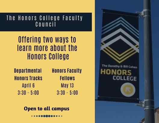The Honors College Faculty Council invites the campus community to two virtual events to learn more about faculty work in the Dorothy and Bill Cohen Honors College.