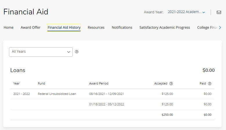 aid fund (such as the Federal Direct Unsubsidized Loan) to Accept, Decline, or Modify