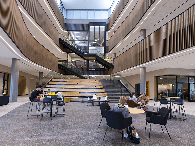 Wayne and Kay Woolsey Hall hosted its first classes in August 2022 following its completed construction. The $60 million project is the home of the W. Frank Barton School of Business, Wichita State’s AACSB-accredited college offering the state’s largest selection of business programs.