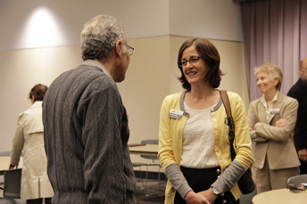 Gina Brown, AET Teaching Award recipient, visits with Ed Sawan.