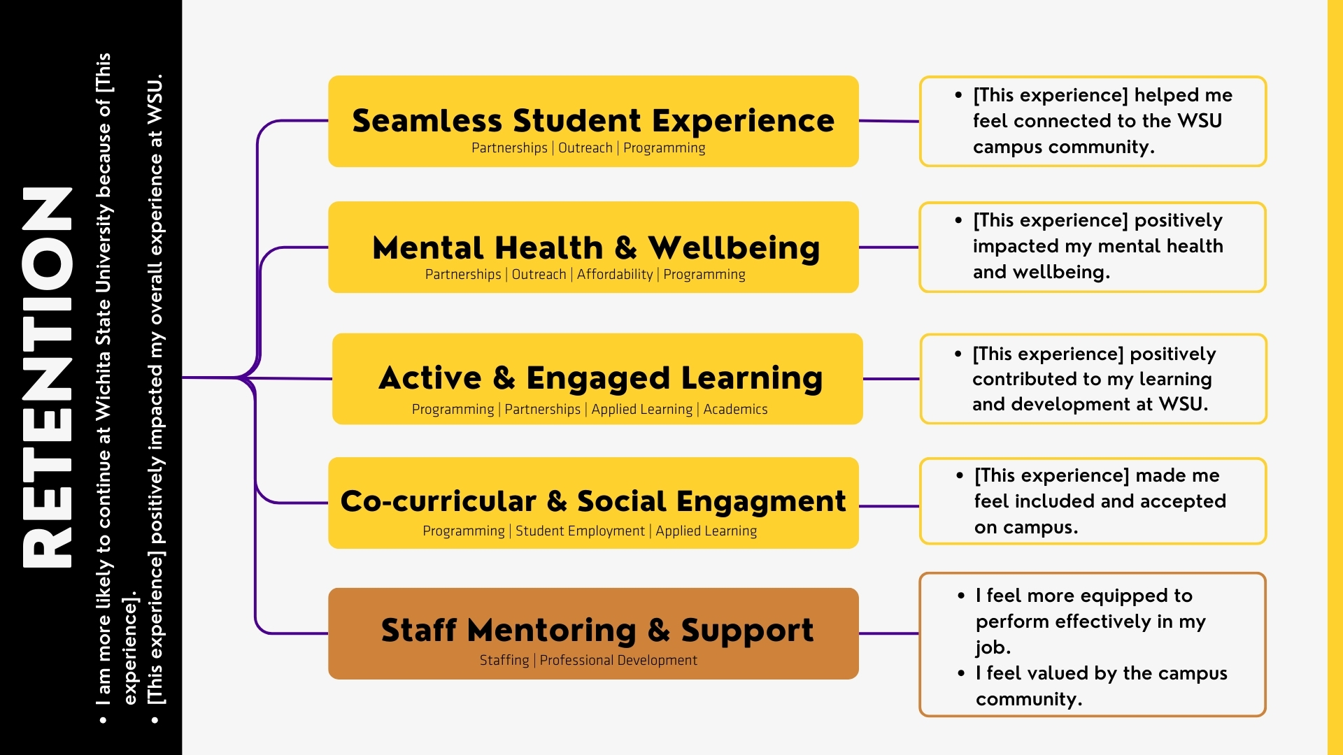 The Division of Student Affairs is committed to fostering a sense of belonging for all students and impacting student retention at WSU.The retention plan seeks to provide a structured plan of action as well as a streamlined reporting process.