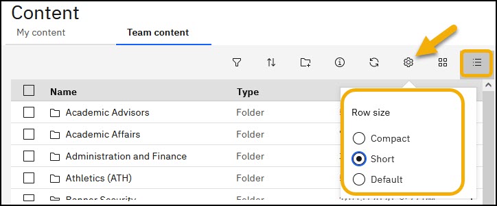 4. If you select List View you have the option to change your row size. While in List View, row size can be adjusted by selecting the Gear icon.