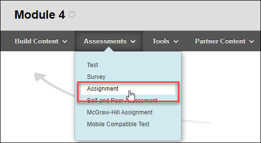 - You will be building an assignment using the Assignments tool in Blackboard. To prepare, you need to have created an assignment for your online/remote delivery class. You will be able to upload files if you need to, or you can type instructions directly into the system. Once you have an assignment ready, it's time to begin. Login to Blackboard, open up the correct class, go to the "Course Materials" area and open up the folder where you would like to put your first assignment. Typically, assignments are linked inside of the module/unit they are associated with. For example, if you have a Content Folder called "Module 4," then all Module 4 content, including assignments (and quizzes, etc.) would be presented in that Content Folder. If you need to create a new folder for your assignment, do that now.