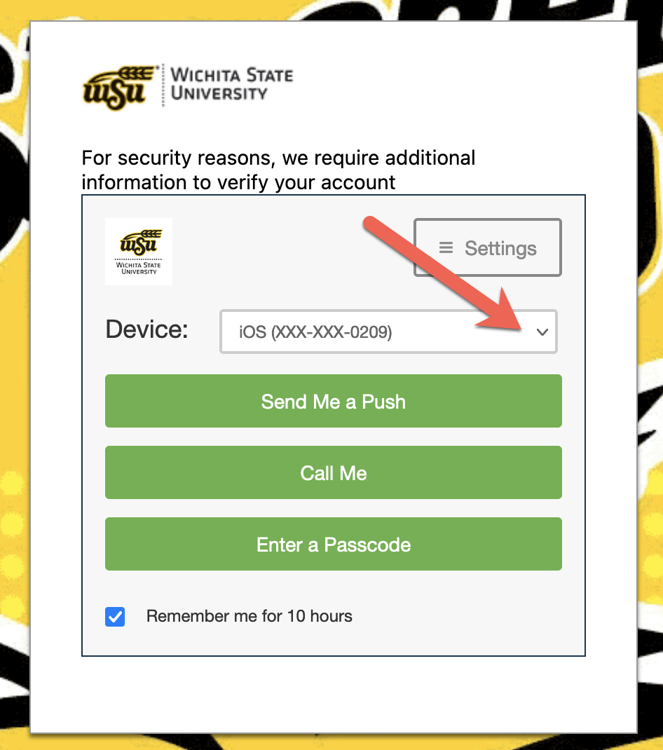 - Navigate to any Wichita State service that requires Duo authentication. For example, you can go to Blackboard or MyWSU.