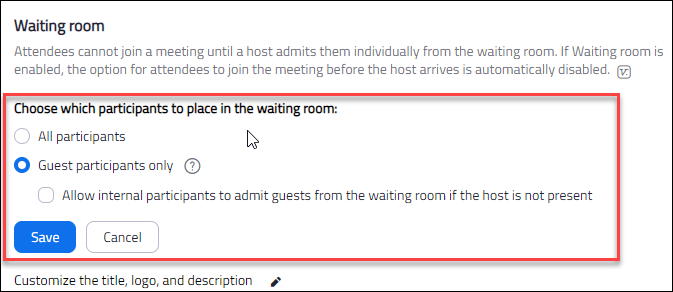- If you do not want to use the waiting room for this particular meeting, simply uncheck the box.