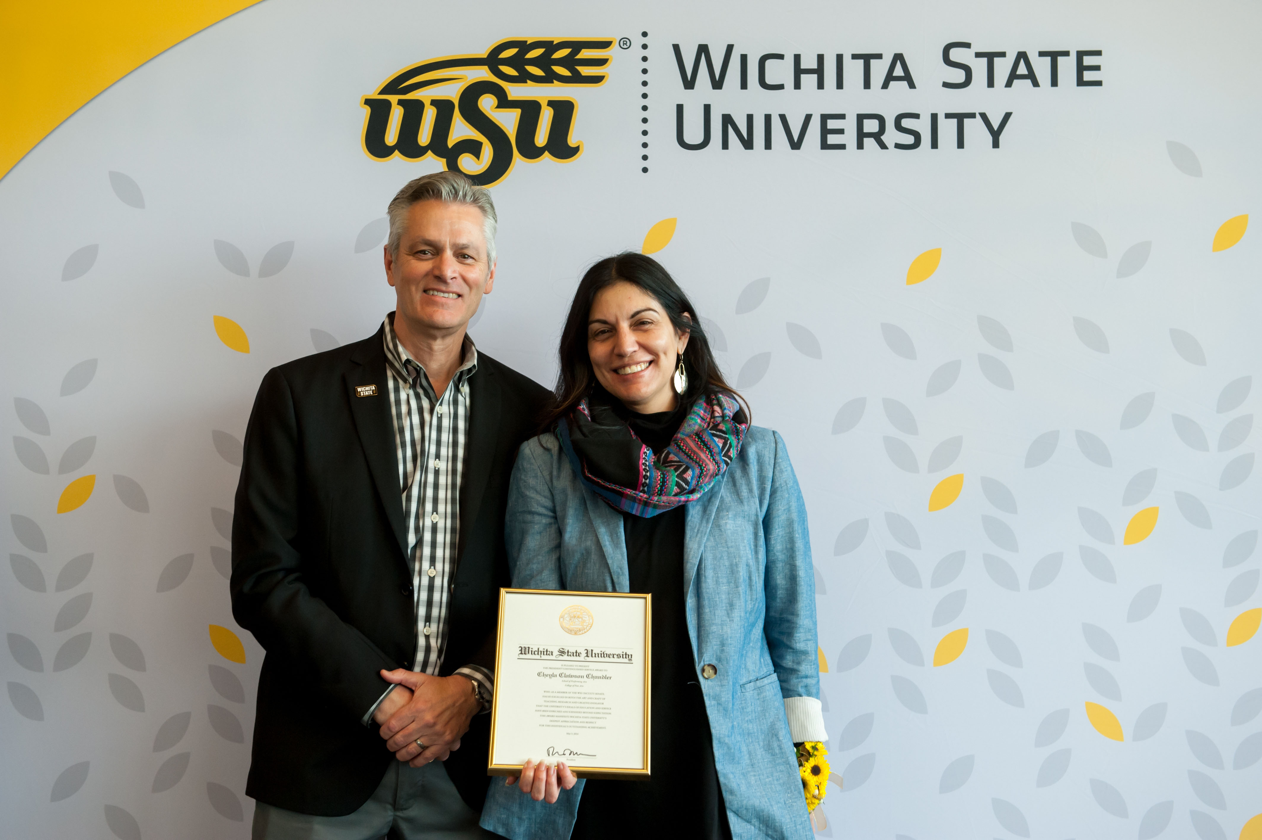 My family: My wife is a proud WSU alum, and our family regularly enjoys WSU's cultural, athletic, and student events. Some of my fondest memories are hearing my kids, when they were young, exclaim, "Look, Daddy's work!" every time they saw WuShock or the WSU logo in Wichita or on television. I still hear it in my head today.
